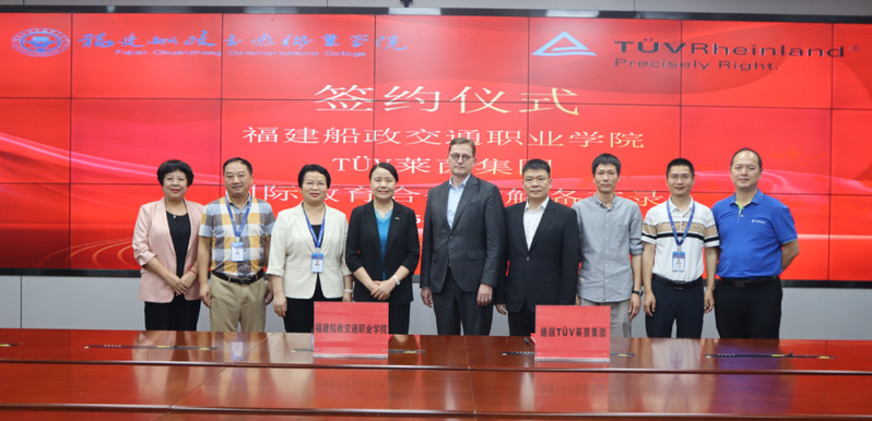 5月9日,學(xué)院同德國TüV 萊茵集團(tuán)在福船園行政樓會議室舉行國際教育合作諒解備忘錄簽約儀式。TüV萊茵集團(tuán)全球職業(yè)教育總監(jiān)Carlo Humberg ,TüV 萊茵大中華區(qū)職業(yè)教育總經(jīng)理陳俊東,萊茵中檢(福建)技術(shù)有限公司副總經(jīng)理趙東岳、經(jīng)理孫代新,福建船政交通職業(yè)學(xué)院黨委副書記、院長陳群,黨委副書記張輝等校企領(lǐng)導(dǎo)出席活動。
