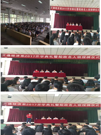 2017年9月8日,福建船政交通職業(yè)學(xué)院交通經(jīng)濟(jì)系劉明書記,陳宏主任,吳吉明副主任與經(jīng)濟(jì)系的各位輔導(dǎo)員到排下喜迎2017級新生,并為2017級新生組織了開學(xué)典禮暨授牌儀式。