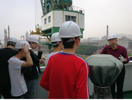 同學(xué)們還登上了“拓遠(yuǎn)號(hào)”集裝箱進(jìn)行參觀學(xué)習(xí),分別在船長(zhǎng)和輪機(jī)長(zhǎng)的帶領(lǐng)下,參觀了駕駛臺(tái)和機(jī)艙,并在駕駛臺(tái)了解集裝箱船的結(jié)構(gòu),觀看集裝箱裝卸船流程。
