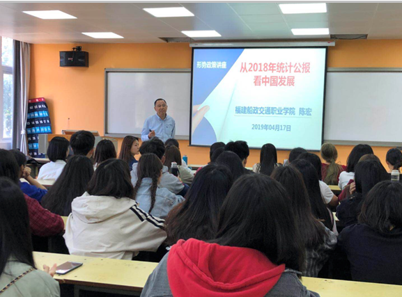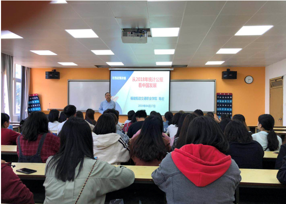 為貫徹落實(shí)《中共福建省委教育工委關(guān)于進(jìn)一步規(guī)范高校形勢與政策課教育教學(xué)工作的通知》(閩委教思〔2017〕13 號)指出,“高校黨委書記、校長和院(系)黨組織書記、院長(系主任)每學(xué)期至少為學(xué)生作一次形勢政策報(bào)告”。根據(jù)《教社科廳函〔2019〕9號教育部辦公廳關(guān)于印發(fā)<高校“形勢與政策”課教學(xué)要點(diǎn)(2019年上輯)>的通知》,交通經(jīng)濟(jì)系主任于2019年4月17日15:50在31#307教室為交通經(jīng)濟(jì)系會計(jì)專業(yè)學(xué)生做了一場題為“從2018年統(tǒng)計(jì)公報(bào)看中國發(fā)展”的主題報(bào)告。報(bào)告上陳宏主任從十九大報(bào)告不忘初心,牢記使命,高舉中國特色社會主義偉大旗幟,決勝全面建成小康社會,奪取新時(shí)代中國特色社會主義偉大勝利,為實(shí)現(xiàn)中華民族偉大復(fù)興的中國夢不懈奮斗。中國共產(chǎn)黨人的初心和使命,就是為中國人民謀幸福,為中華民族謀復(fù)興。
