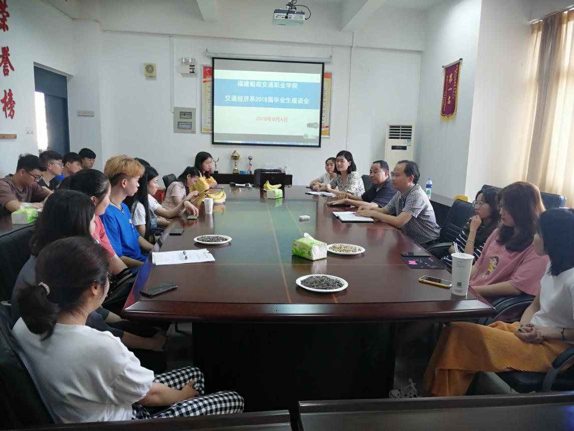 2019年6月4日下午,交通經(jīng)濟(jì)系為2019屆畢業(yè)生舉行了一場座談會(huì),系劉明書記、陳宏主任、畢業(yè)班輔導(dǎo)員張彩琴、鄭茜及2019屆的優(yōu)秀畢業(yè)生代表參加了此次座談會(huì)。