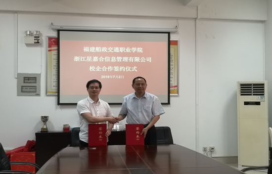 2019年7月2日,福建船政交通職業(yè)學(xué)院與浙江星嘉合信息管理有限公司在學(xué)院交通經(jīng)濟(jì)系六樓會(huì)議室舉行“校企合作簽約儀式”。交通經(jīng)濟(jì)系陳宏主任、財(cái)經(jīng)教研室全體教師以及浙江星嘉合信息管理有限公司陳熹總經(jīng)理、高校教務(wù)部陳聰騰經(jīng)理和產(chǎn)品部李杰經(jīng)理等企業(yè)代表出席共同出席簽約儀式。