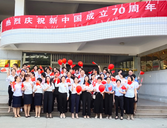 “我和我的祖國,一刻也不能分割,無論我走到哪里,都流出一首贊歌……”全體教師手持五星紅旗,同唱《我和我的祖國》,通過歌聲表達(dá)了他們對于新中國成立70周年的喜悅與自豪之情,唱出新時(shí)代工作者的忠誠與擔(dān)當(dāng)。