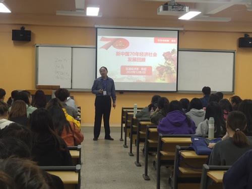 福建船政交通職業(yè)學(xué)院交通經(jīng)濟(jì)系關(guān)于新中國70年經(jīng)濟(jì)社會發(fā)展回顧講座于2019年12月1日下午16:00在經(jīng)管樓208成功召開。本次講座由陳宏主任主講, 18級報(bào)關(guān)全體同學(xué)準(zhǔn)時到場。