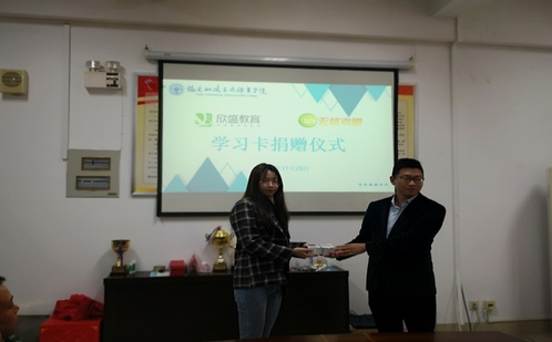 2019年11月28日上午,福建船政交通職業(yè)學(xué)院、欣盛教育與無憂考吧學(xué)習(xí)卡捐贈儀式在南區(qū)31號樓六樓會議室成功舉行。福建船政交通職業(yè)學(xué)院交通經(jīng)濟系主任陳宏、副主任吳吉明、會計教研室主任林潔瑩、欣盛教育集團創(chuàng)始人張旭輝總經(jīng)理,管偉霖副總經(jīng)理,以及交通經(jīng)濟系學(xué)生代表參加了此次儀式。