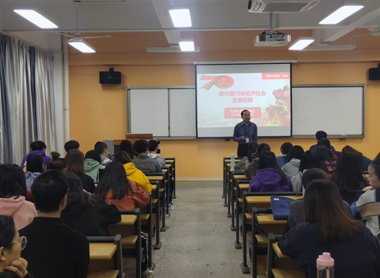 福建船政交通職業(yè)學(xué)院交通經(jīng)濟(jì)系關(guān)于新中國(guó)70年經(jīng)濟(jì)社會(huì)發(fā)展回顧講座于2019年12月1日下午16:00在經(jīng)管樓208成功召開。本次講座由陳宏主任主講, 18級(jí)報(bào)關(guān)全體同學(xué)準(zhǔn)時(shí)到場(chǎng)。