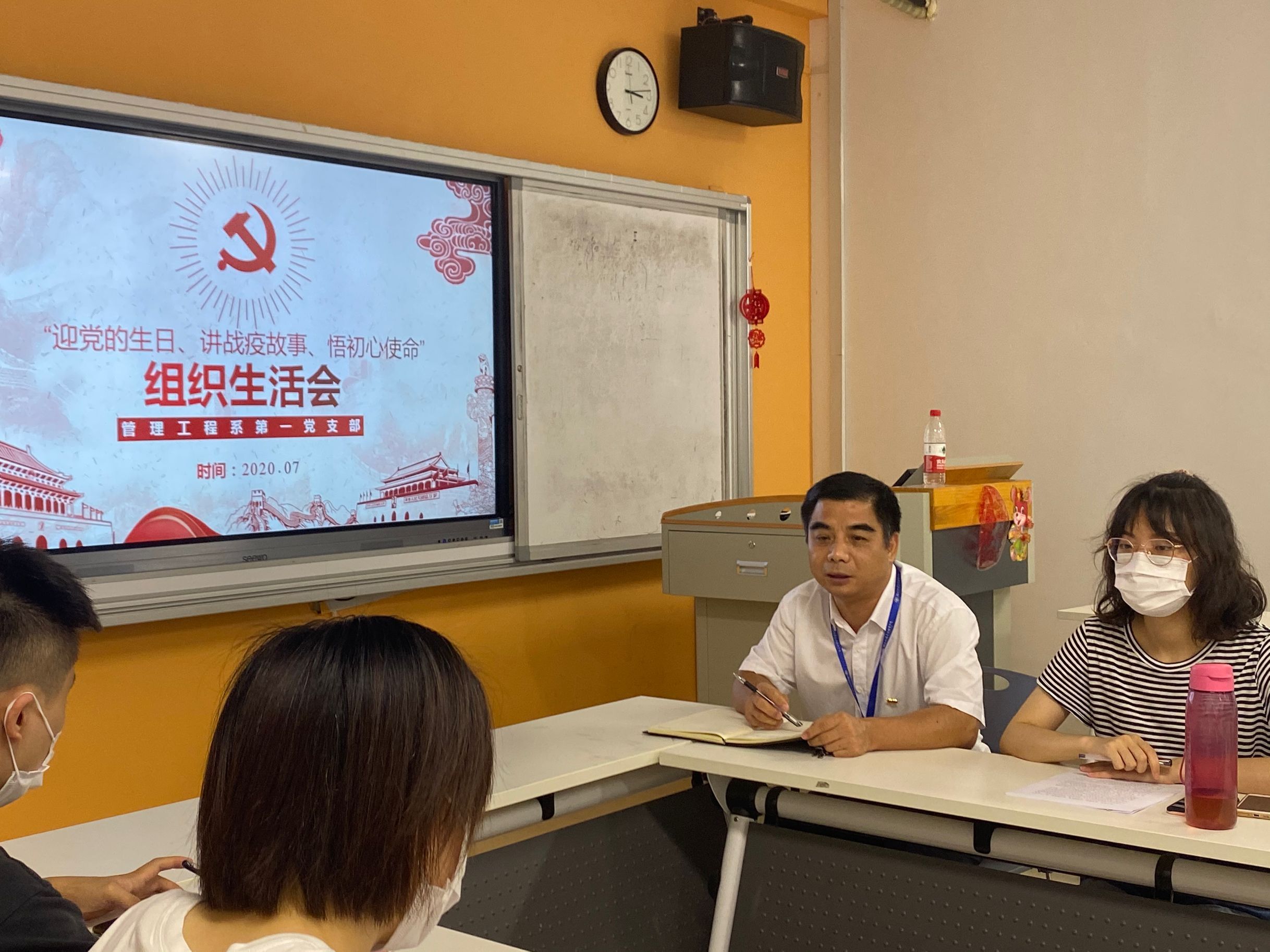 為慶祝中國共產(chǎn)黨成立99周年,重溫黨的光輝歷史,發(fā)揚(yáng)黨的光榮傳統(tǒng),充分發(fā)揮高?;鶎狱h組織戰(zhàn)斗堡壘作用和教工黨員的先鋒模范作用,管理工程系一支部于2020年7月7日,以“迎黨的生日、講戰(zhàn)疫故事、悟初心使命”為主題,在31#406開展黨員專題組織生活會。支部書記湯曉玲主持會議。