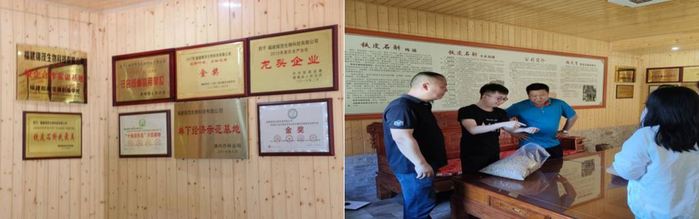 第二站小分隊(duì)來(lái)到了南靖縣山城鎮(zhèn)下碑村,這里是烽琳股份有限公司所屬的最早的種植基地——下碑基地。烽琳公司這幾年來(lái)的碩果累累,從最初200來(lái)畝的荔枝林下種植發(fā)展到擁有910畝生態(tài)種植園,公司墻上掛滿(mǎn)了的榮譽(yù)成果。這些成果也伴隨著部分貧困農(nóng)戶(hù)走上了脫貧的道路。同時(shí)烽琳公司也非常重視黨建文化,建有支部委員會(huì),2019年還被南靖縣委評(píng)為四星級(jí)黨組織。據(jù)介紹,公司黨員在農(nóng)民脫貧工作中起模范帶頭作用。