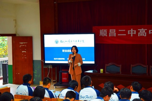 活動(dòng)分為主題講座和技能操練兩個(gè)部分,上午在順昌二中開展了何為職業(yè)教育的講座以及經(jīng)濟(jì)與管理學(xué)院專業(yè)介紹,同時(shí)我們還邀請到福建省心理咨詢師協(xié)會(huì)副會(huì)長徐藝端老師為同學(xué)分享了主題為“陽光心態(tài)備戰(zhàn)高考”的主題講座。