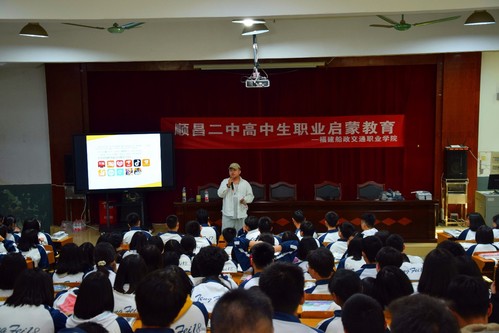 為深入貫徹落實(shí)《國家職業(yè)教育改革實(shí)施方案》,加強(qiáng)中小學(xué)生職業(yè)啟蒙教育,完成新時(shí)代賦予教育的歷史使命,充分發(fā)揮福建船政交通職業(yè)學(xué)院國家“雙高計(jì)劃”建設(shè)單位的優(yōu)勢、職業(yè)教育資源優(yōu)勢以及現(xiàn)代職教文化特色,11月2日,福建船政交通職業(yè)學(xué)院經(jīng)濟(jì)與管理學(xué)院副院長林穎、市場營銷教研室主任陳華、電子商務(wù)教研室主任陳樂天、市場營銷專業(yè)教師湯曉玲一行赴南平市順昌二中開展職業(yè)啟蒙教育活動(dòng),并為同學(xué)們帶來了豐富的宣傳物資及學(xué)院精美的文創(chuàng)禮品。