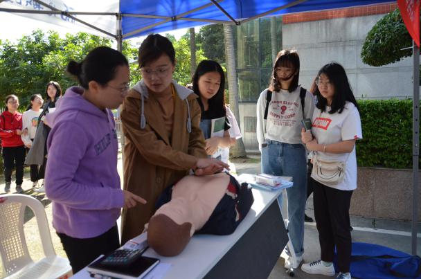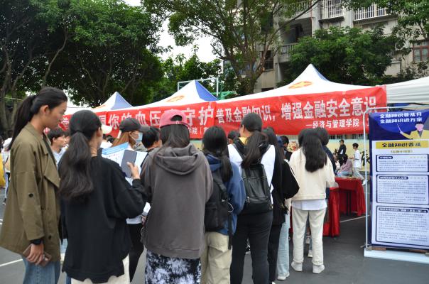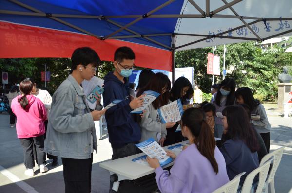 活動(dòng)現(xiàn)場(chǎng),老師和志愿者們通過(guò)分發(fā)金融知識(shí)宣傳單和手把手教學(xué)的形式,為來(lái)往的同學(xué)介紹普及日常生產(chǎn)生活所必要的金融基礎(chǔ)知識(shí)、禮儀知識(shí)、急救知識(shí),同學(xué)們或在宣傳板前駐足觀看,或向志愿者咨詢問(wèn)題,現(xiàn)場(chǎng)科普氛圍濃烈。