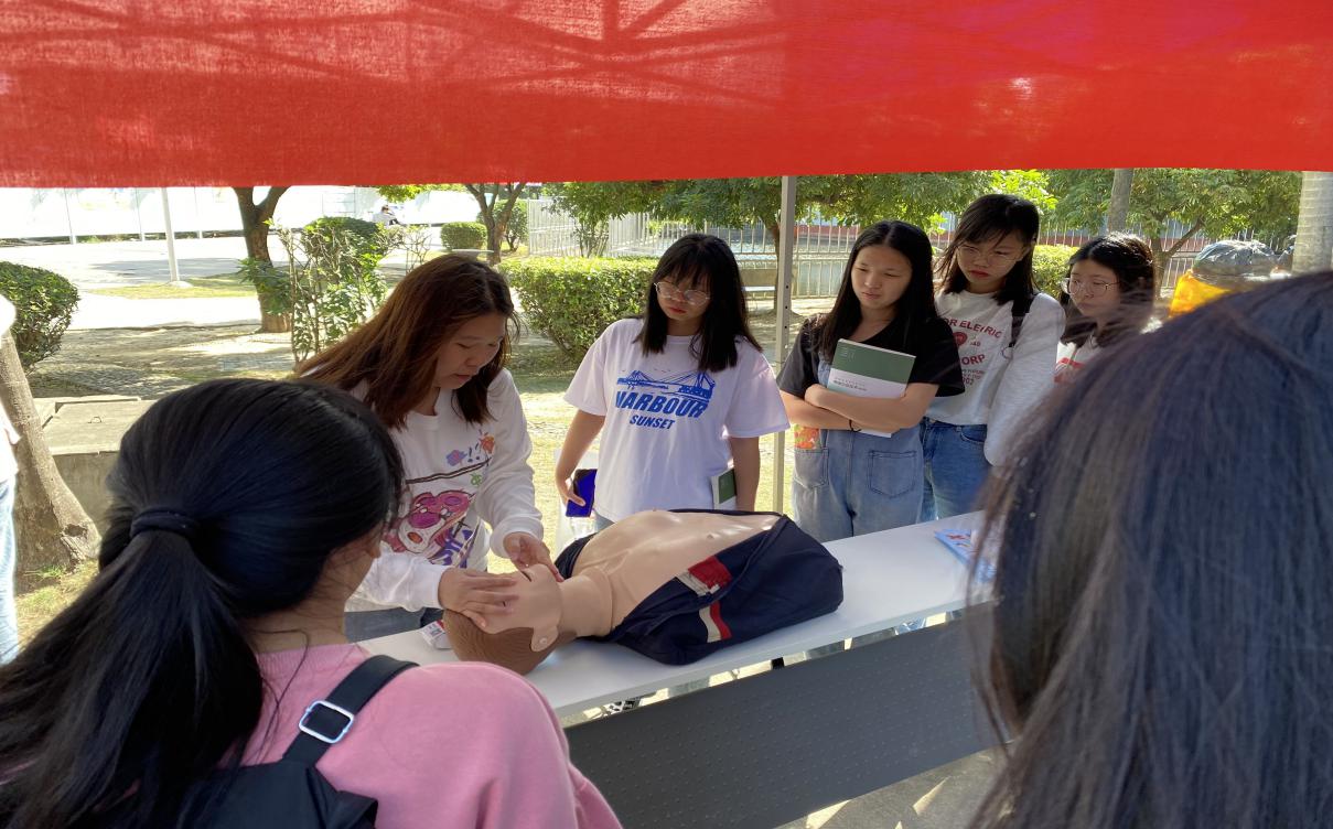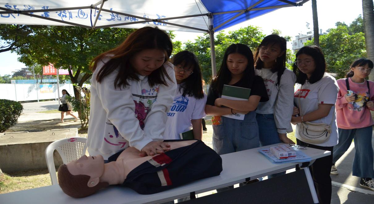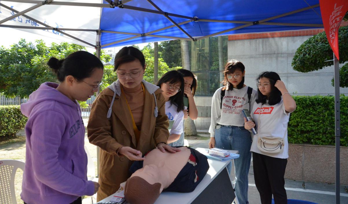 經(jīng)管學(xué)院嚴敏琳老師講解了心肺復(fù)蘇等安全知識,并利用模擬人給大家作了心肺復(fù)蘇的現(xiàn)場示范,對日常生活中容易出現(xiàn)的突發(fā)意外急救措施與學(xué)員積極互動。
