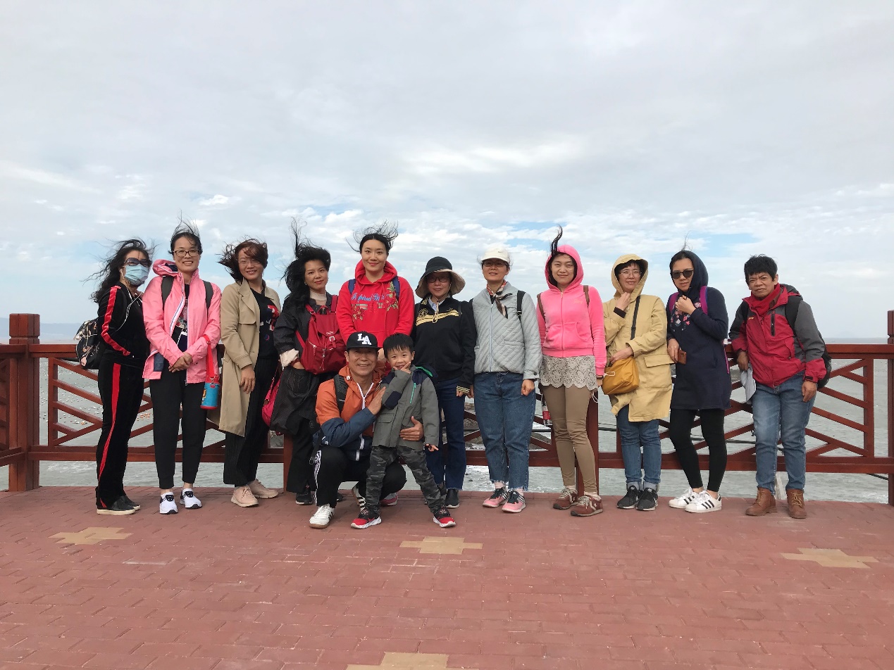 早晨出發(fā)時(shí)天空濃云密布,到目的地后略帶咸腥的海風(fēng)給我們來個(gè)清涼猛烈的擁抱,溫度似乎驟降了幾度,但這些都沒有嚇退我們的熱情,大家三兩成群,興致勃勃地奔向各個(gè)網(wǎng)紅打卡點(diǎn),陶醉在美麗的海島風(fēng)光中。無邊無垠的碧海藍(lán)天映入眼簾,清澈湛藍(lán)的大海,形狀各異的火山巖石,加上迎面吹拂的清涼的海風(fēng),徜徉于此,老師們暫時(shí)忘卻塵世的煩惱和喧囂,盡享大自然的美妙和神奇。