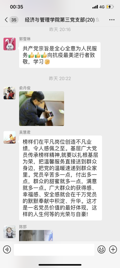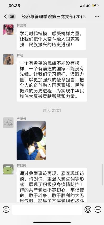 觀看過(guò)程中,黨員同志們?cè)邳h員微信群內(nèi)積極發(fā)言,交流觀看心得。