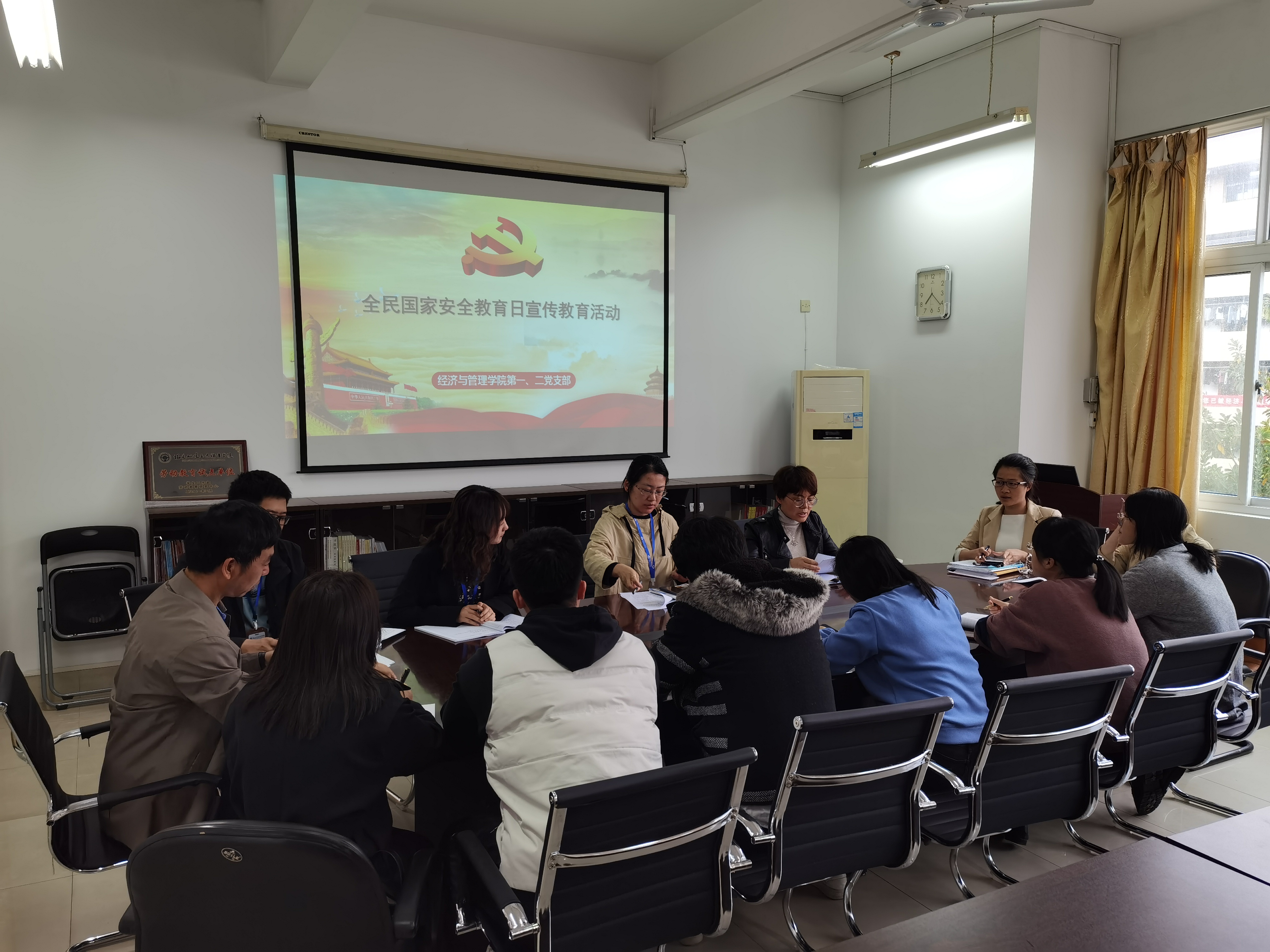 經(jīng)濟(jì)與管理學(xué)院各黨支部組織召開(kāi)專題會(huì)議,對(duì)2021年全民國(guó)家教育日宣傳教育活動(dòng)進(jìn)行安排部署。會(huì)議專題學(xué)習(xí)了《教育部思想政治工作司關(guān)于組織開(kāi)展2021年全民國(guó)家安全教育日宣傳教育活動(dòng)的通知》(教思政司函〔2021〕6號(hào))精神以及習(xí)近平總書(shū)記有關(guān)國(guó)家安全的重要講話精神,并對(duì)2021年全民國(guó)家安全教育日宣傳教育活動(dòng)進(jìn)行了具體安排部署。一、二支部全體黨員會(huì)后立即開(kāi)展了網(wǎng)絡(luò)安全大排查活動(dòng),對(duì)經(jīng)管學(xué)院全體學(xué)生微信工作群、QQ工作群、微博等自媒體運(yùn)行情況開(kāi)展排查,對(duì)學(xué)生宿舍安全情況再次進(jìn)行集中檢查,及時(shí)發(fā)現(xiàn)并整改安全隱患。