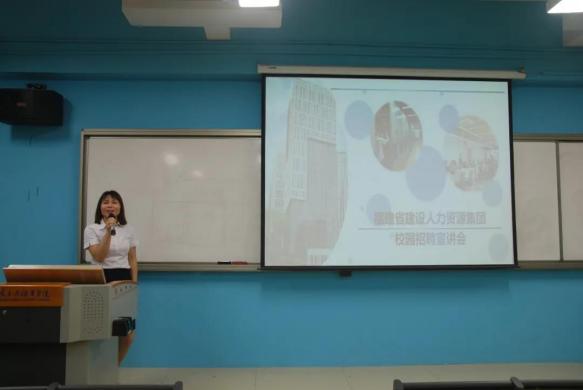 為做好疫情防控常態(tài)化下的畢業(yè)生就業(yè)推薦工作,進(jìn)一步拓寬高校畢業(yè)生就業(yè)渠道,促進(jìn)學(xué)院畢業(yè)生充分就業(yè)、高質(zhì)量就業(yè)。2021年9月2日,福建省建設(shè)人力資源集團(tuán)股份公司、頤和工社為永泰地產(chǎn)項(xiàng)目經(jīng)管樓教室舉辦宣講活動(dòng)。
