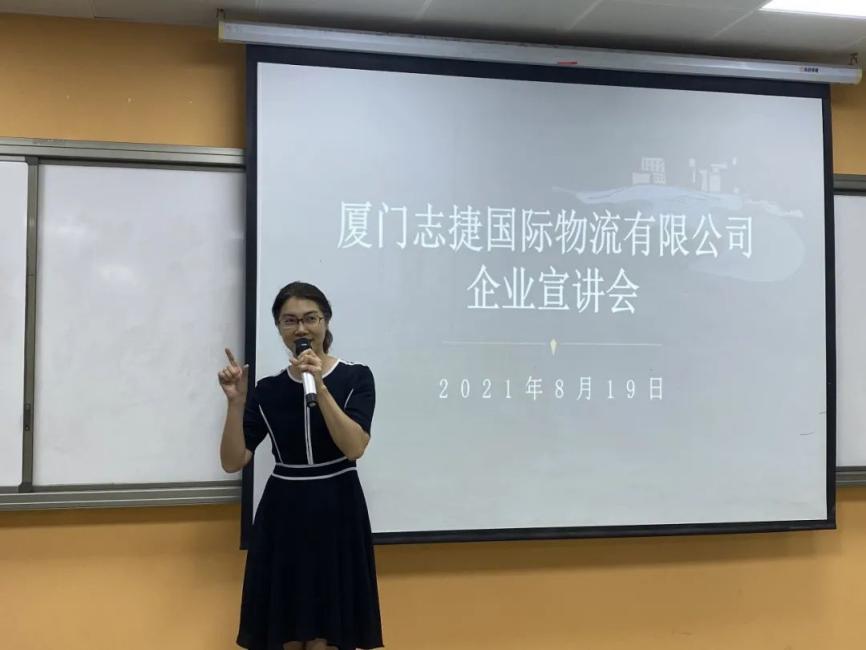 接下來,業(yè)務(wù)部經(jīng)理蘇敏為參加招聘會的同學(xué)們帶來了“廈門志捷”的招聘宣講會,主要介紹了公司的概況、公司的優(yōu)勢以及本次招聘的主要崗位和待遇,并回答了參會同學(xué)關(guān)于就業(yè)方面的疑問。