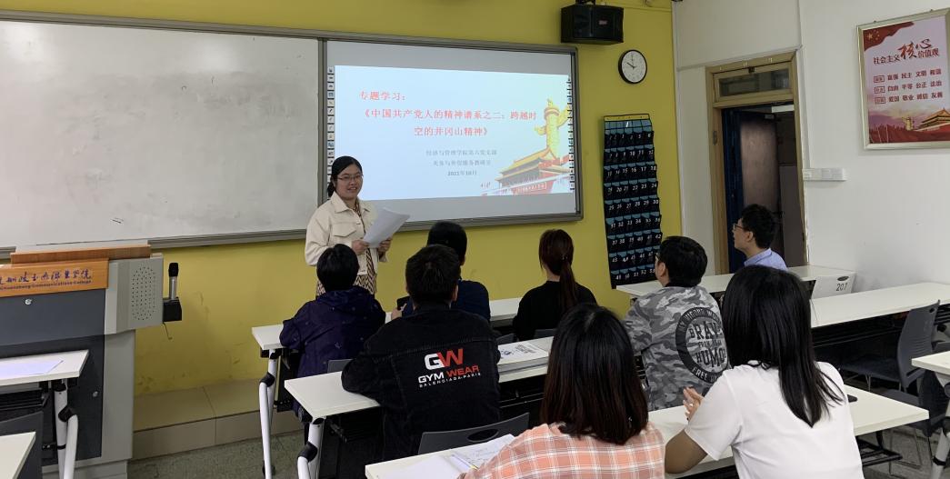 為了深入學(xué)習(xí)把握中國(guó)共產(chǎn)黨人的精神譜系,傳承和弘揚(yáng)中國(guó)共產(chǎn)黨的偉大精神,2021年10月26日,經(jīng)濟(jì)與管理學(xué)院第六黨支部全體黨員在支部書記吳春華的帶領(lǐng)下,開展了《中國(guó)共產(chǎn)黨人的精神譜系》專題學(xué)習(xí)。