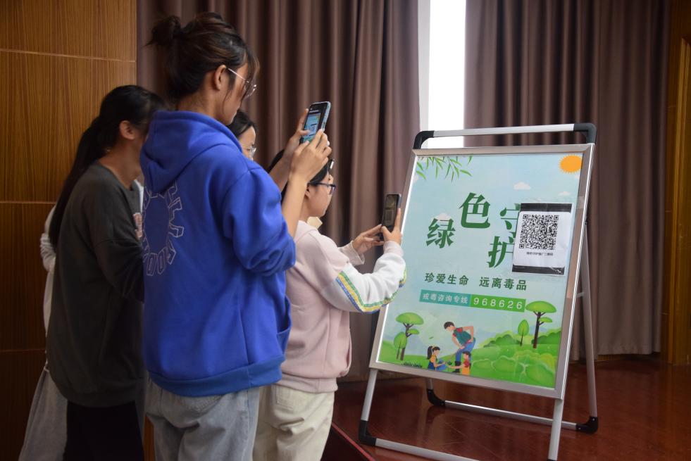 黃警官還向同學(xué)們介紹了“綠色守護”APP,通過此APP可以學(xué)習禁毒知識,知曉毒品危害、了解禁毒工作。