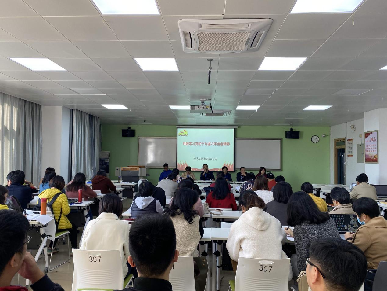 2021年11月24日,經(jīng)濟與管理學院組織全體教職工學習十九屆六中全會精神。