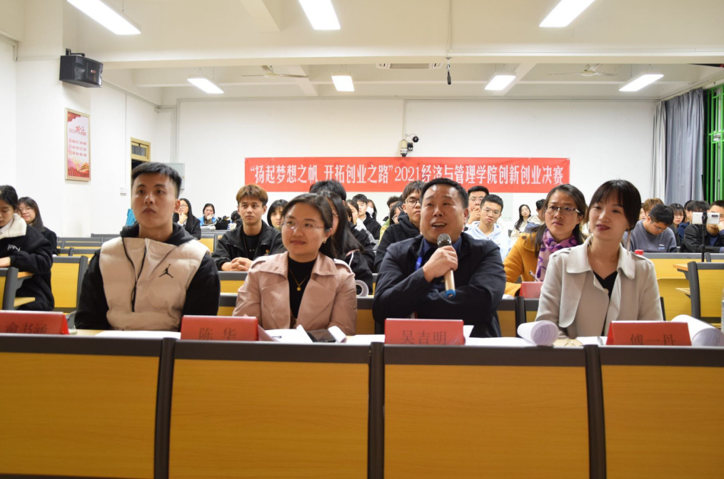 比賽結(jié)束后,經(jīng)濟(jì)與管理學(xué)院副院長吳吉明對本次比賽進(jìn)行總結(jié)點(diǎn)評。他對項(xiàng)目的創(chuàng)意性表示肯定,并從項(xiàng)目路演要求、商業(yè)模式、團(tuán)隊(duì)構(gòu)建等方面對項(xiàng)目進(jìn)行了指導(dǎo),引導(dǎo)培養(yǎng)學(xué)生建立創(chuàng)新創(chuàng)業(yè)意識和提升創(chuàng)新創(chuàng)業(yè)能力。