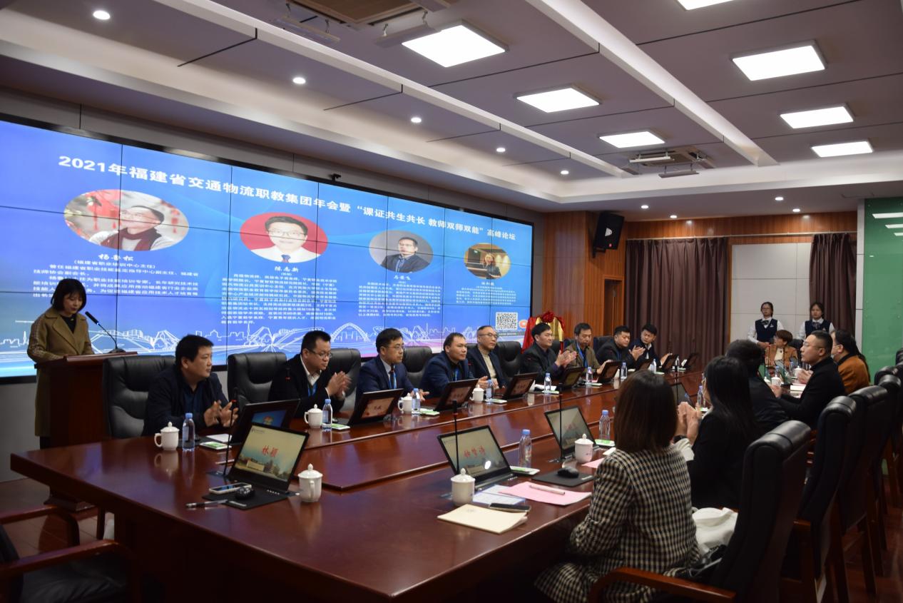 12月11日,2021年福建省交通物流職業(yè)教育集團(tuán)年會(huì)暨“課證共生共長 教師雙師雙能”高峰論壇在我院召開。會(huì)議由福建省教育廳、福建省職業(yè)培訓(xùn)中心、福建省物流協(xié)會(huì)指導(dǎo),福建船政交通職業(yè)學(xué)院主辦,福建省交通物流職教集團(tuán)承辦,北京絡(luò)捷斯特科技發(fā)展股份有限公司、福建華眾互聯(lián)網(wǎng)科技有限公司、福建因賽數(shù)據(jù)科技有限公司協(xié)辦。年會(huì)邀請福建省職業(yè)培訓(xùn)中心楊魯松主任,寧夏職業(yè)技術(shù)學(xué)院陳志新教授、浙江經(jīng)濟(jì)職業(yè)技術(shù)學(xué)院馬榮飛教授及北京絡(luò)捷斯特副總經(jīng)理汝知駿女士作為主講嘉賓。學(xué)院副院長高汝武、教務(wù)處處長陳朝慰、經(jīng)濟(jì)與管理學(xué)院黨總支書記俞素平、經(jīng)濟(jì)與管理學(xué)院院長房曰榮、科技處副處長林少丹等我院代表以及來自福州市內(nèi)中高職院校、知名物流企業(yè)代表出席會(huì)議。