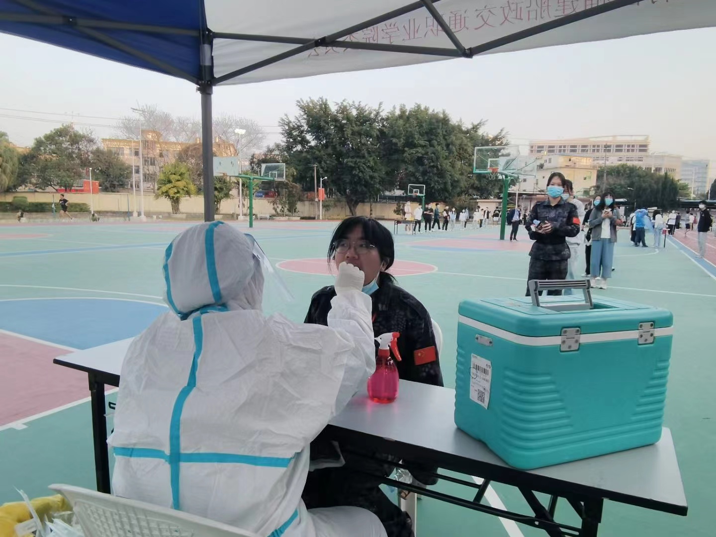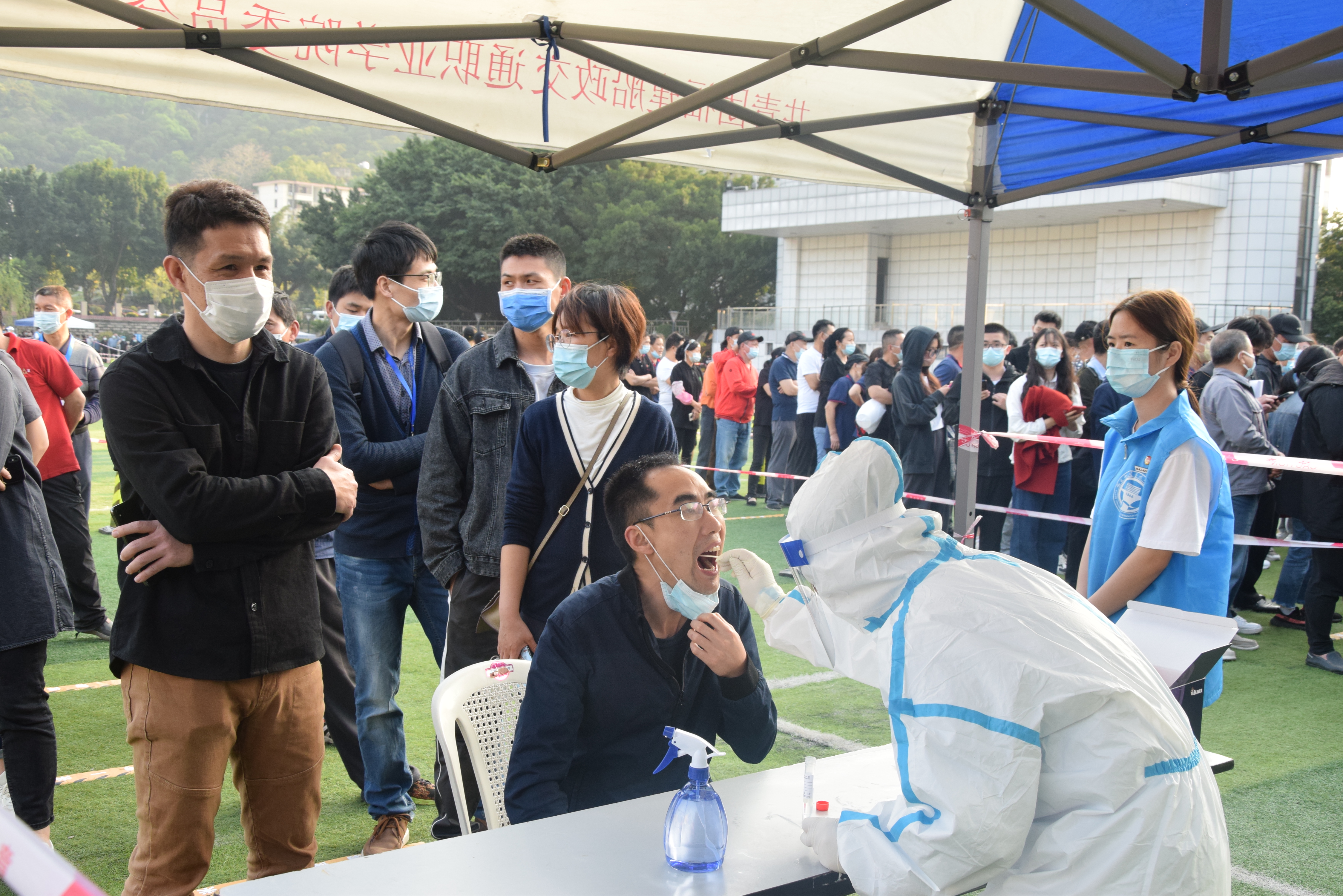 學(xué)院有序組織全院師生參與學(xué)校組織的全員核酸檢測,“請出示登記碼,保持一米間隔……”檢測現(xiàn)場,師生在志愿者的的引導(dǎo)下,佩戴口罩,保持一米間隔,有序排隊(duì),由醫(yī)務(wù)人員進(jìn)行核酸采樣,達(dá)到應(yīng)檢盡檢的效果。