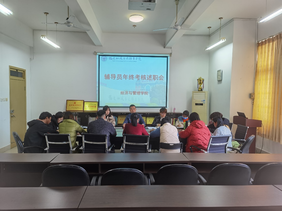 為進一步提高學院輔導員的思想政治素養(yǎng)和教育管理能力,經(jīng)濟與管理學院于2021年12月29日舉辦了2021年輔導員年終考核述職大會,并作年度工作總結(jié)。經(jīng)濟與管理學院黨總支書記俞素平、副書記林麗萍及經(jīng)濟與管理學院全體輔導員參加會議。
