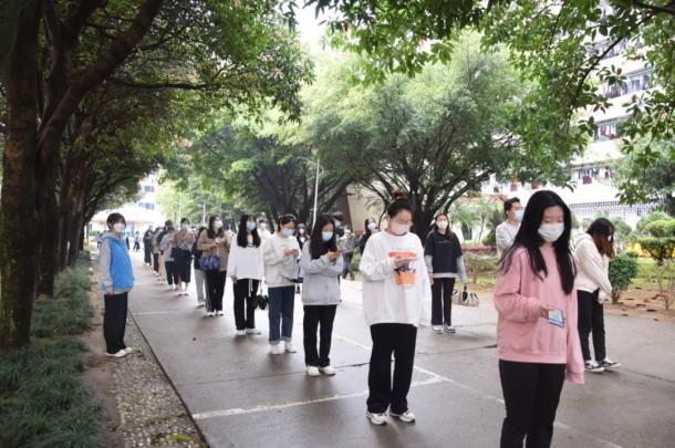 忠于職守,筑牢疫情防控網(wǎng)絡(luò)。面對疫情的突如其來,學校組織全員核酸檢測,經(jīng)濟與管理學院青年突擊隊積極有效配合核酸檢測順利完成,沖在抗疫第一線。“請大家佩戴好口罩,有序排隊!”“請大家不要急,這邊排隊?!敝驹刚邆円?guī)范的禮貌用語和引導手勢,保障了現(xiàn)場檢測秩序井然,贏得了醫(yī)護工作人員和廣大受檢師生的一致好評。
