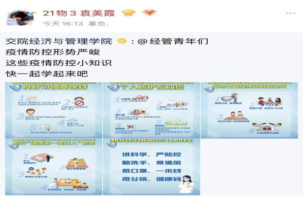 為了抵制疫情來襲,經(jīng)濟與管理學院青年突擊隊用自己的方式逆風迎戰(zhàn)。4月本應(yīng)春光明媚充滿希望,但一場突如其來的疫情,打亂了我們的計劃。我們興致勃勃討論過的春日之約,變成眾志成城全力抗疫。這場戰(zhàn)疫里,有一群青年志愿者的身影,格外打動人心。為打贏疫情防控阻擊戰(zhàn)無私奉獻,因為我們堅信,疫情終會過去,勝利就在眼前。讓我們用自己的方式,凝聚戰(zhàn)“疫”力量。