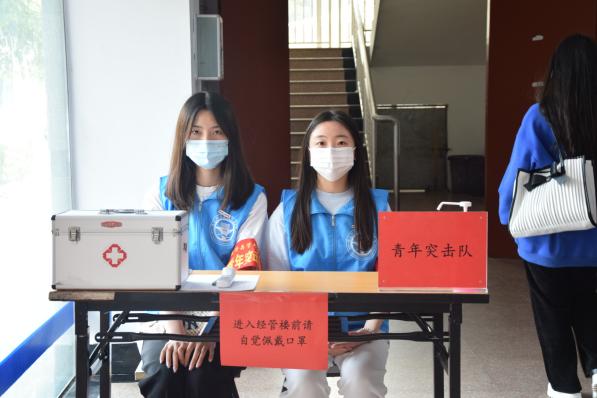 經(jīng)濟與管理學(xué)院疫情防控青年突擊隊在面對疫情時,積極響應(yīng)號召,主動投身于疫情防控任務(wù)中,用青春的力量共同戰(zhàn)“疫”。青年突擊隊隊員們,以嚴(yán)謹(jǐn)負(fù)責(zé)的工作態(tài)度執(zhí)行著疫情防控工作。維持著同學(xué)們的出入秩序、測量體溫、提醒大家在公共場所佩戴口罩,他們用實際行動為同學(xué)們的健康筑起一道道保障線。
