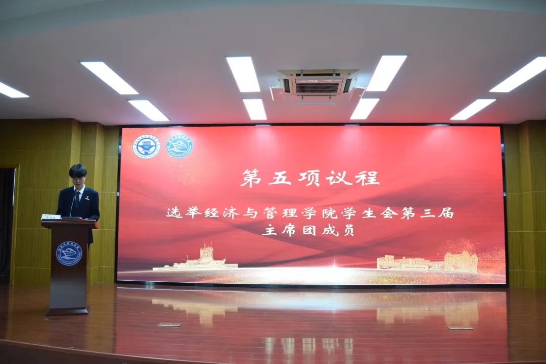 會議最后,經(jīng)濟與管理學院團委書記傅一丹為學代會閉幕式致辭。經(jīng)濟與管理學院第三屆學生代表大會在嘹亮的校歌中圓滿落幕!