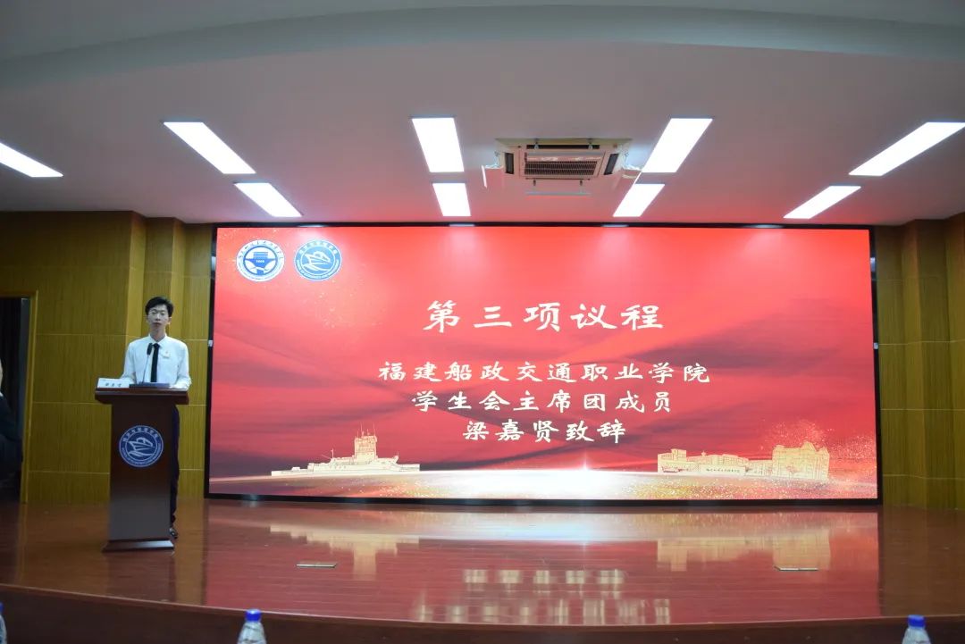 福建船政交通職業(yè)學院學生會主席團成員梁嘉賢同學致詞