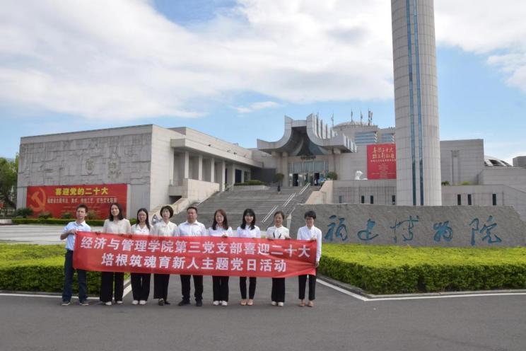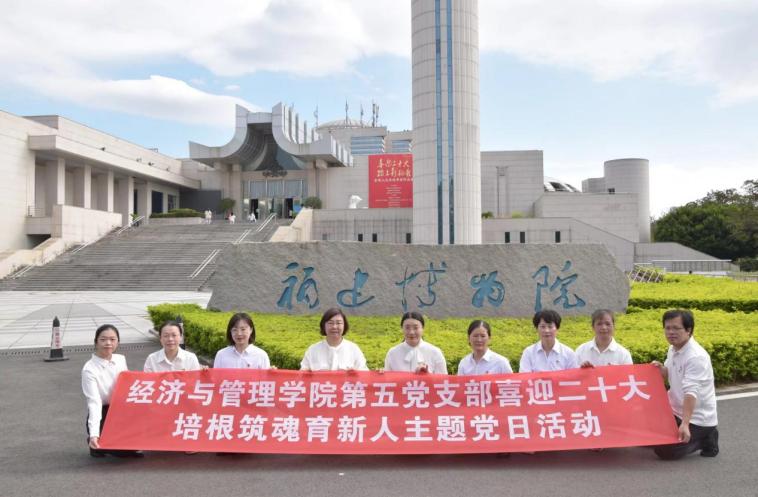 2022年10月15日,為迎接黨的二十大勝利召開(kāi),引領(lǐng)廣大青年教師堅(jiān)定不移跟黨走,進(jìn)一步加強(qiáng)師德師風(fēng)建設(shè),努力建設(shè)一支師德高尚、業(yè)務(wù)精湛、充滿活力的高素質(zhì)教師隊(duì)伍。經(jīng)濟(jì)與管理學(xué)院第三、第五黨支部全體黨員和學(xué)生入黨積極分子一起赴福建博物館開(kāi)展“喜迎黨的二十大 培根鑄魂育新人”主題黨日活動(dòng)。