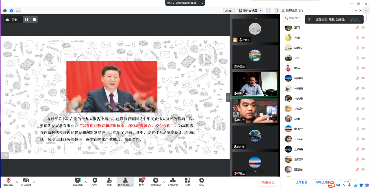 吳麗芳教授以“多方協(xié)同創(chuàng)新發(fā)展,共建高質(zhì)量職教團(tuán)隊——國家級職業(yè)教育教師教學(xué)創(chuàng)新團(tuán)隊建設(shè)實(shí)踐”為主題,分享了打造國家級教師教學(xué)創(chuàng)新團(tuán)隊的寶貴經(jīng)驗(yàn)。她從教育部印發(fā)的《全國職業(yè)院校教師教學(xué)創(chuàng)新團(tuán)隊建設(shè)方案》出發(fā),指出建設(shè)創(chuàng)新團(tuán)隊的基本思路是:優(yōu)化體制機(jī)制建設(shè),推動教師能力全面提升;深化校際、校企合作,切實(shí)打造命運(yùn)共同體;重構(gòu)專業(yè)課程體系,深化教學(xué)模式改革創(chuàng)新。她強(qiáng)調(diào),團(tuán)隊建設(shè)過程中,絕不可單打獨(dú)斗,整個團(tuán)隊需要緊密結(jié)合形成命運(yùn)共同體,才能真正做到優(yōu)勢互補(bǔ),多方共鳴。圍繞建設(shè)基本思路,吳麗芳教授抽絲剝繭地介紹了建設(shè)過程中“五大平臺”、“四位一體”、結(jié)構(gòu)化教學(xué)團(tuán)隊、教師工作站等實(shí)際經(jīng)驗(yàn)與方法,細(xì)致入微,實(shí)踐性極強(qiáng)。師德養(yǎng)成方面,她分享了課程思政、專題講座、教育實(shí)踐等全方位全過程師德養(yǎng)成方法,和模范引領(lǐng)、培訓(xùn)推進(jìn)、研討強(qiáng)化、同行評價、學(xué)生監(jiān)督的“五個一”建設(shè)機(jī)制,強(qiáng)調(diào)要注重課堂樹德、典型樹德、師德內(nèi)化,切實(shí)打造一支“四有”標(biāo)準(zhǔn)的高尚教師隊伍。