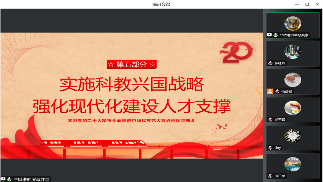 最后,嚴(yán)敏琳同志總結(jié),全體黨員要深刻學(xué)習(xí)領(lǐng)會黨的二十大報告中的新觀點、新論斷、新思想、新戰(zhàn)略、新要求,及時做好總結(jié),切實把黨的二十大精神貫徹落實到支部工作、教學(xué)工作、科研工作、班主任工作、防疫工作的全過程中,勇于擔(dān)當(dāng)作為,積極踐行為黨育人、為國育才使命,為科教興國唱響職教強音。