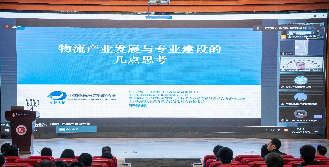 會(huì)議由福建船政交通職業(yè)學(xué)院和泉州輕工職業(yè)學(xué)院聯(lián)合承辦,采用線上線下結(jié)合的形式進(jìn)行,線下會(huì)場(chǎng)設(shè)在泉州輕工職業(yè)學(xué)院。全國(guó)物流職業(yè)教育教學(xué)指導(dǎo)委員會(huì)秘書(shū)長(zhǎng)郭肇明、副秘書(shū)長(zhǎng)李俊峰,福建省物流行業(yè)職業(yè)教育指導(dǎo)委員會(huì)主任肖舒平以及來(lái)自企業(yè)和院校的121名委員代表出席了會(huì)議。