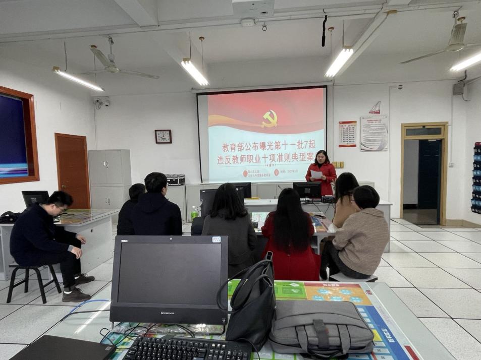 首先,全體教師學(xué)習(xí)了《教育部公開曝光第十一批7起違反教師職業(yè)行為十項(xiàng)準(zhǔn)則典型案例》。在案例學(xué)習(xí)中,各支部書記、教研室主任強(qiáng)調(diào)每一位教師都要知準(zhǔn)則、守底線,從7起典型案例中深刻反思、嚴(yán)于律己,切實(shí)增強(qiáng)遵守教師職業(yè)行為十項(xiàng)準(zhǔn)則的思想自覺和行動(dòng)自覺,堅(jiān)守為黨育人、為國(guó)育才的初心,不斷涵養(yǎng)高尚師德,以德施教、以德育德,做黨和人民滿意的“四有”好老師。隨后,各支部(教研室)結(jié)合各自專業(yè)特色,結(jié)合此次典型案例對(duì)十項(xiàng)內(nèi)容進(jìn)行了重點(diǎn)闡述、心得交流。