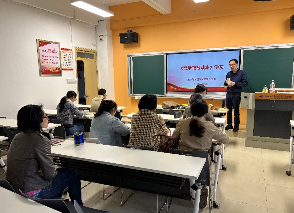 2023年4月26日,經(jīng)濟(jì)與管理學(xué)院第四黨支部召開全體黨員學(xué)習(xí)會議,由支部書記嚴(yán)敏琳同志主持會議,組織全體黨員學(xué)習(xí)《警示教育讀本》?!毒窘逃x本》選取了違反政治紀(jì)律、中央八項規(guī)定精神、組織紀(jì)律、廉潔紀(jì)律、工作紀(jì)律、國家法律法規(guī)等六個類型7個典型案例,這些違紀(jì)違法典型案例給黨員干部帶來了一次生動震撼的思想洗禮。