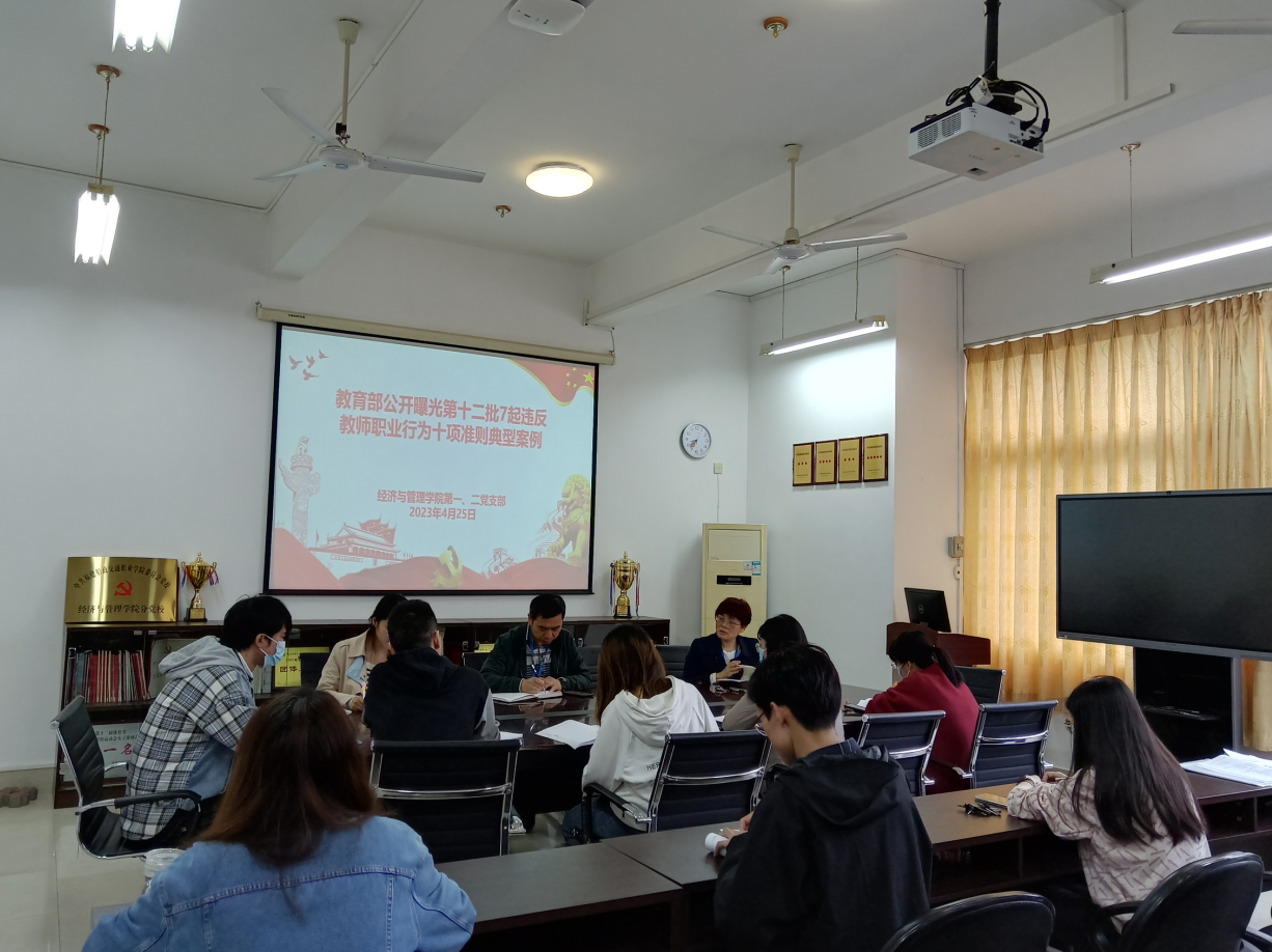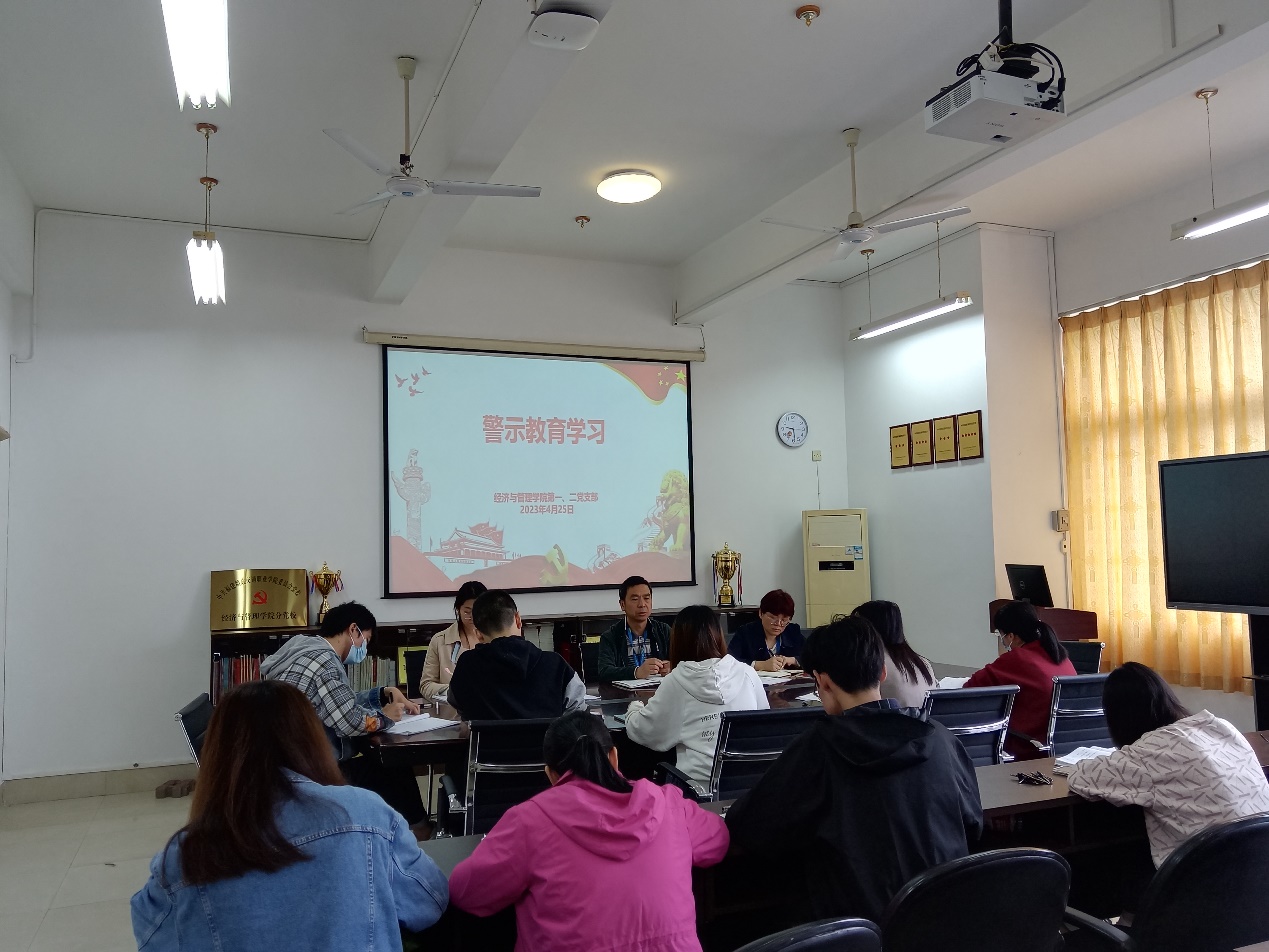 為貫徹落實黨的二十大精神,充分發(fā)揮典型案例警示教育作用,教育引導黨員同志知敬畏、存戒懼、守底線,筑牢拒腐防變的思想防線,加強師德師風建設(shè),切實落實新時代高校教師“鑄魂育人”使命,2023年4月25日,經(jīng)濟與管理學院第一、第二黨支部在31號樓412室開展警示教育專題學習會。