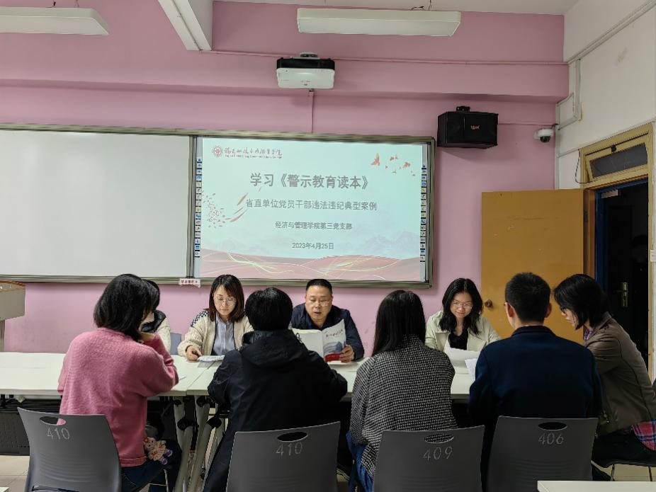 廉潔是師道之前提,師道是立教之根本。為進一步推進基層教師支部的廉潔文化建設(shè),加強黨風(fēng)廉政建設(shè),提高黨員廉潔意識,從思想源頭杜絕違法違紀(jì)的發(fā)生,4月26日下午,經(jīng)濟與管理學(xué)院第三黨支部開展警示教育學(xué)習(xí)活動。