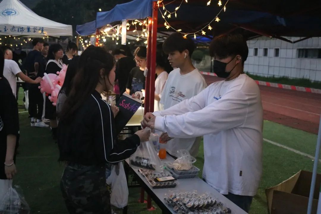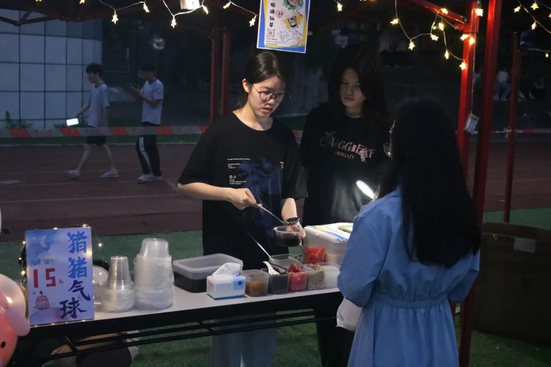 星光點(diǎn)點(diǎn),晚風(fēng)徐來(lái),此時(shí)就是最美好的歡樂(lè)場(chǎng),各位攤主們用心賣(mài)出自己的每一份商品,帶給同學(xué)們,獨(dú)一無(wú)二的快樂(lè)體驗(yàn)。