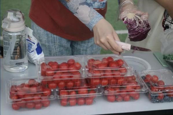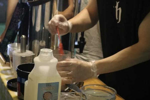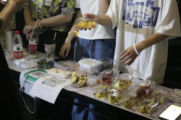 攤主們都想方設(shè)法吸引同學(xué)們來(lái)攤前了解自己的產(chǎn)品,有的在操場(chǎng)上現(xiàn)場(chǎng)吆喝,“走過(guò)路過(guò)不要錯(cuò)過(guò)”,有的自帶音響放出動(dòng)感的音樂(lè),甚至有的攤主放出“狠話(huà)”,“味道不好不要錢(qián)!”