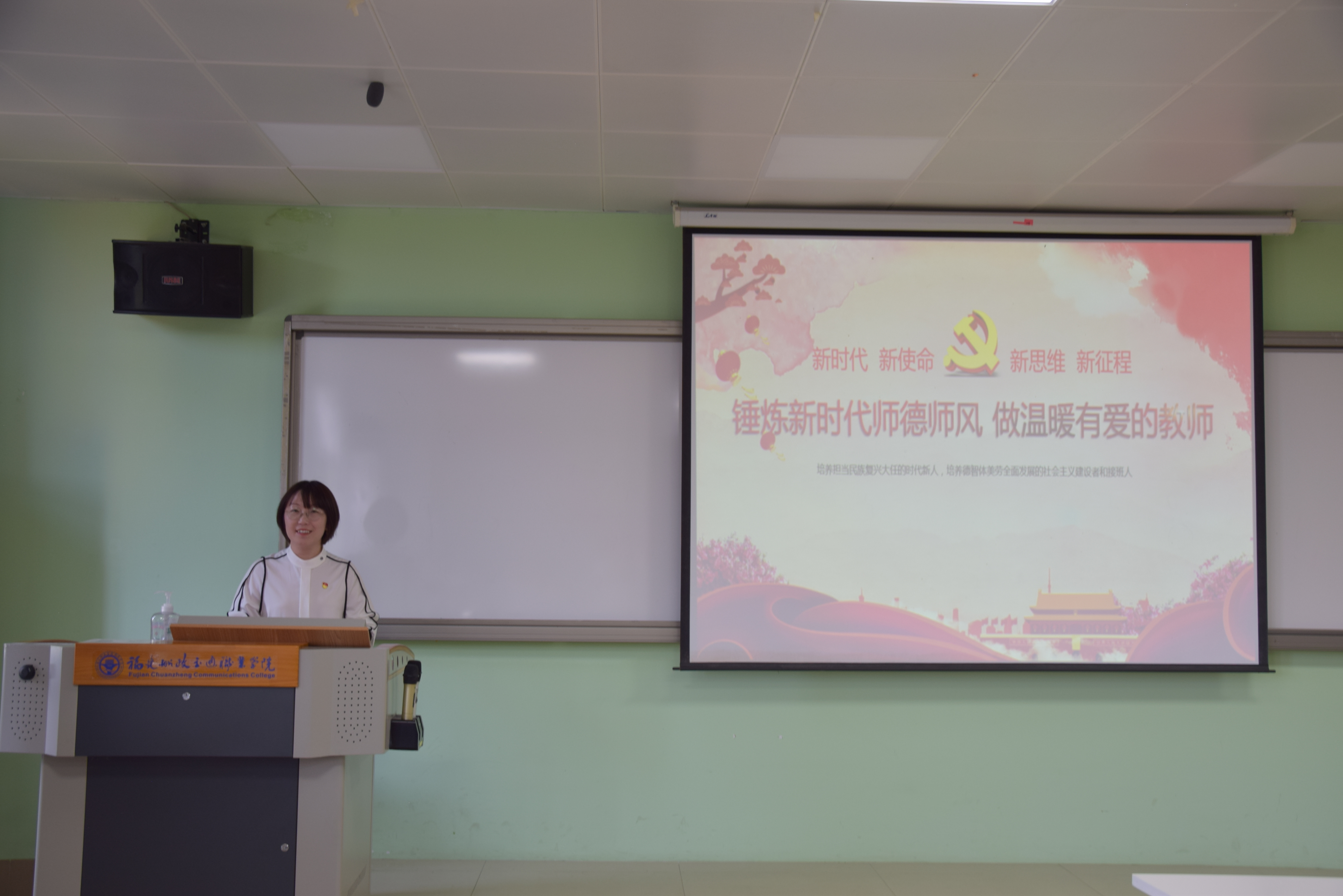 專題學(xué)習(xí)后,輔導(dǎo)員代表林媛、專任教師代表謝霓結(jié)合自身工作經(jīng)歷,分別以《深耕細(xì)作,立德樹人》《錘煉新時(shí)代師德師風(fēng),做溫暖有愛的老師》為題,以生動(dòng)詳實(shí)的案例、通俗易懂的語言,分享了從教以來自己對(duì)師德的感悟,讓全體教職工體會(huì)到了師德并不是簡(jiǎn)單地說教,而是一種精神的體現(xiàn),師德師風(fēng)也不是枯躁的理念和高舉的旗幟,它就體現(xiàn)在我們身邊,在我們的隊(duì)伍里。新時(shí)代教師應(yīng)該在三尺講臺(tái)上默默耕耘,嚴(yán)愛相濟(jì)、潤(rùn)己澤人,以人格魅力呵護(hù)學(xué)生心靈,以學(xué)術(shù)造詣開啟學(xué)生智慧,讓每一個(gè)學(xué)生都健康成長(zhǎng)。