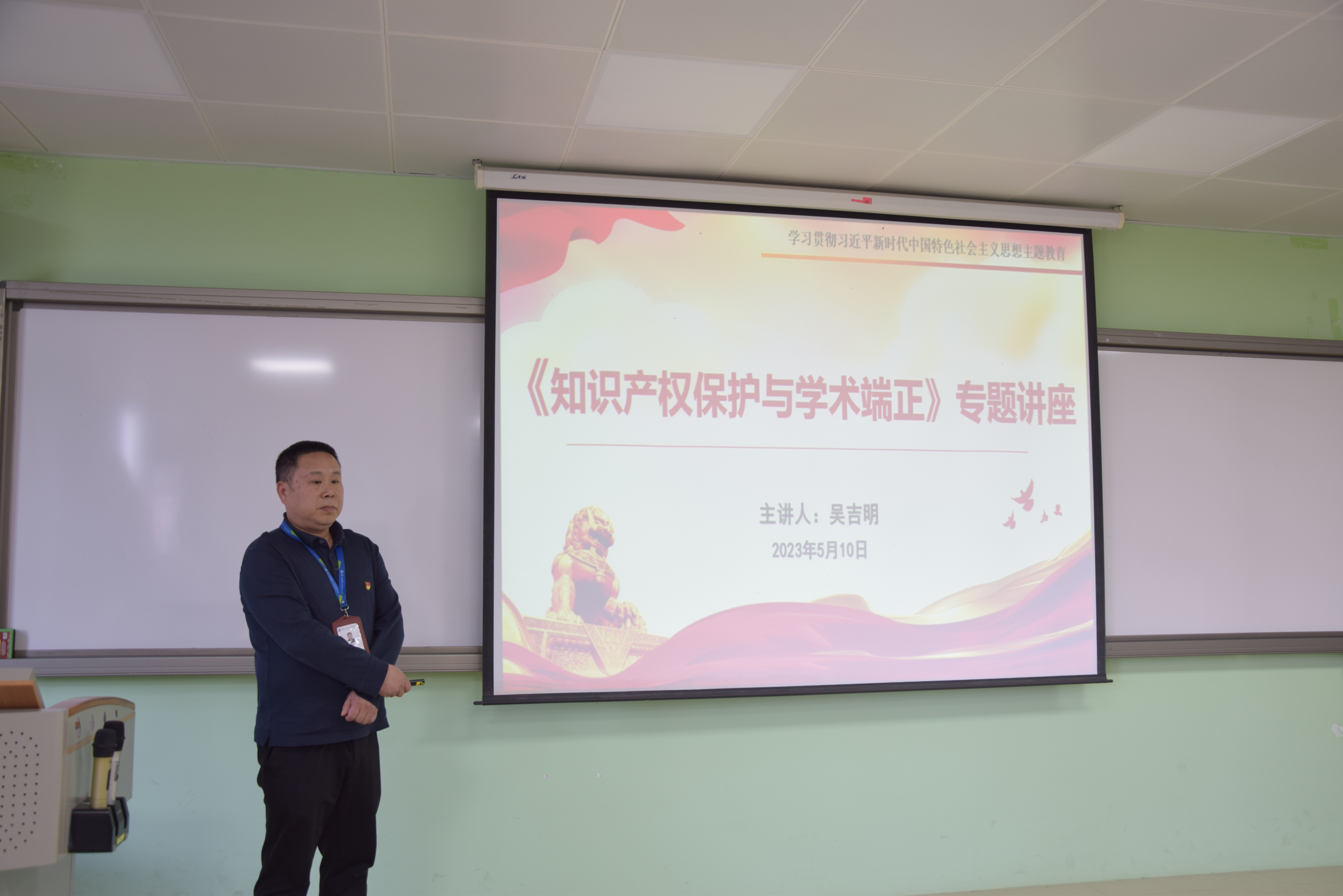為了提高教職工的知識(shí)產(chǎn)權(quán)意識(shí),提升科研誠(chéng)信敏感度,抵制學(xué)術(shù)不端。副院長(zhǎng)吳吉明以《知識(shí)產(chǎn)權(quán)保護(hù)與學(xué)術(shù)端正》為題,重點(diǎn)介紹了知識(shí)產(chǎn)權(quán)的概念和范疇以及相關(guān)法律法規(guī),介紹了學(xué)術(shù)不端的界定、典型案例及相關(guān)規(guī)定,進(jìn)一步引導(dǎo)廣大教師立德為先、誠(chéng)信為本、操守為重、廉潔從教。