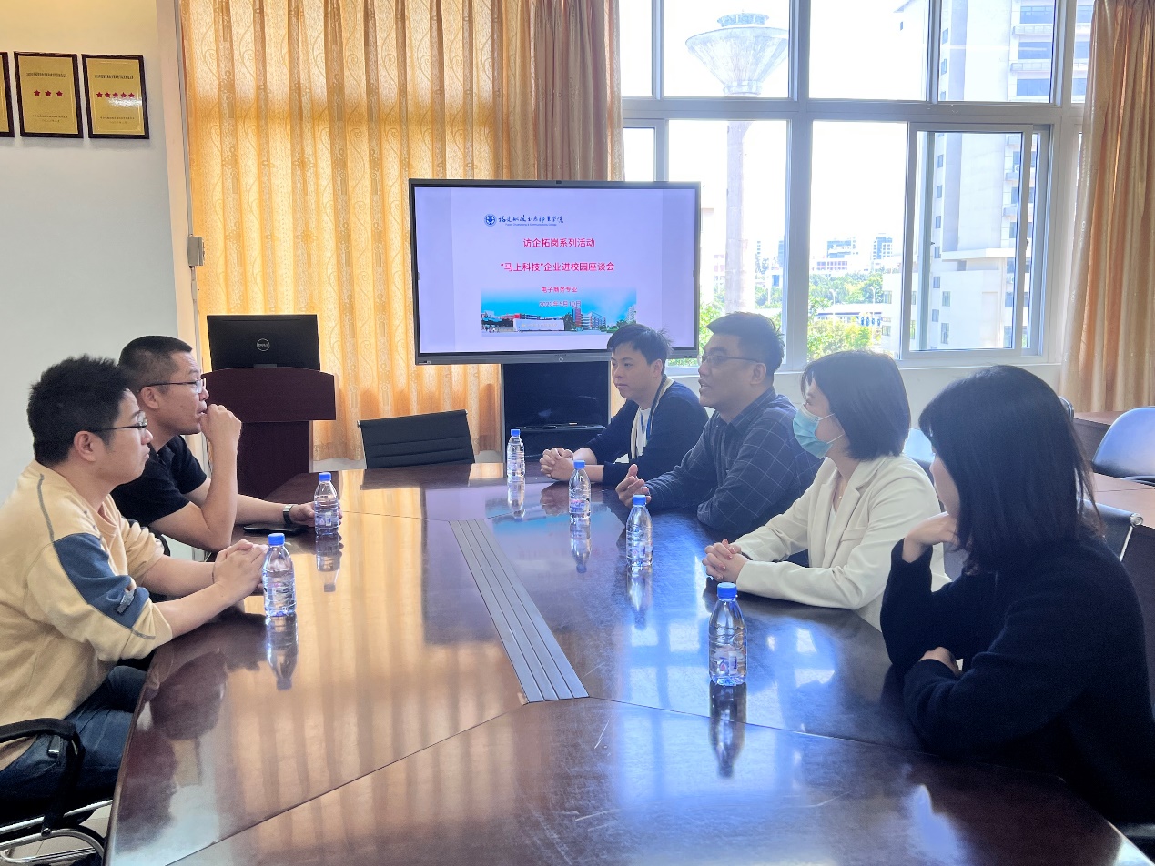 為深入開(kāi)展學(xué)習(xí)貫徹習(xí)近平新時(shí)代中國(guó)特色社會(huì)主義思想主題教育,加快落實(shí)教育部“訪企拓崗促就業(yè)”專(zhuān)項(xiàng)行動(dòng)新部署、新要求,深挖崗位資源,拓寬就業(yè)渠道,提升人才培養(yǎng)質(zhì)量和學(xué)生就業(yè)質(zhì)量,深化校企合作、推進(jìn)產(chǎn)教研融合。2023年5月11日上午,邀請(qǐng)福州馬上網(wǎng)絡(luò)科技有限公司副總經(jīng)理趙喜一行到校交流座談。學(xué)院副院長(zhǎng)林穎、電商教研室負(fù)責(zé)人陳樂(lè)天及部分骨干教師參加了交流座談會(huì)。