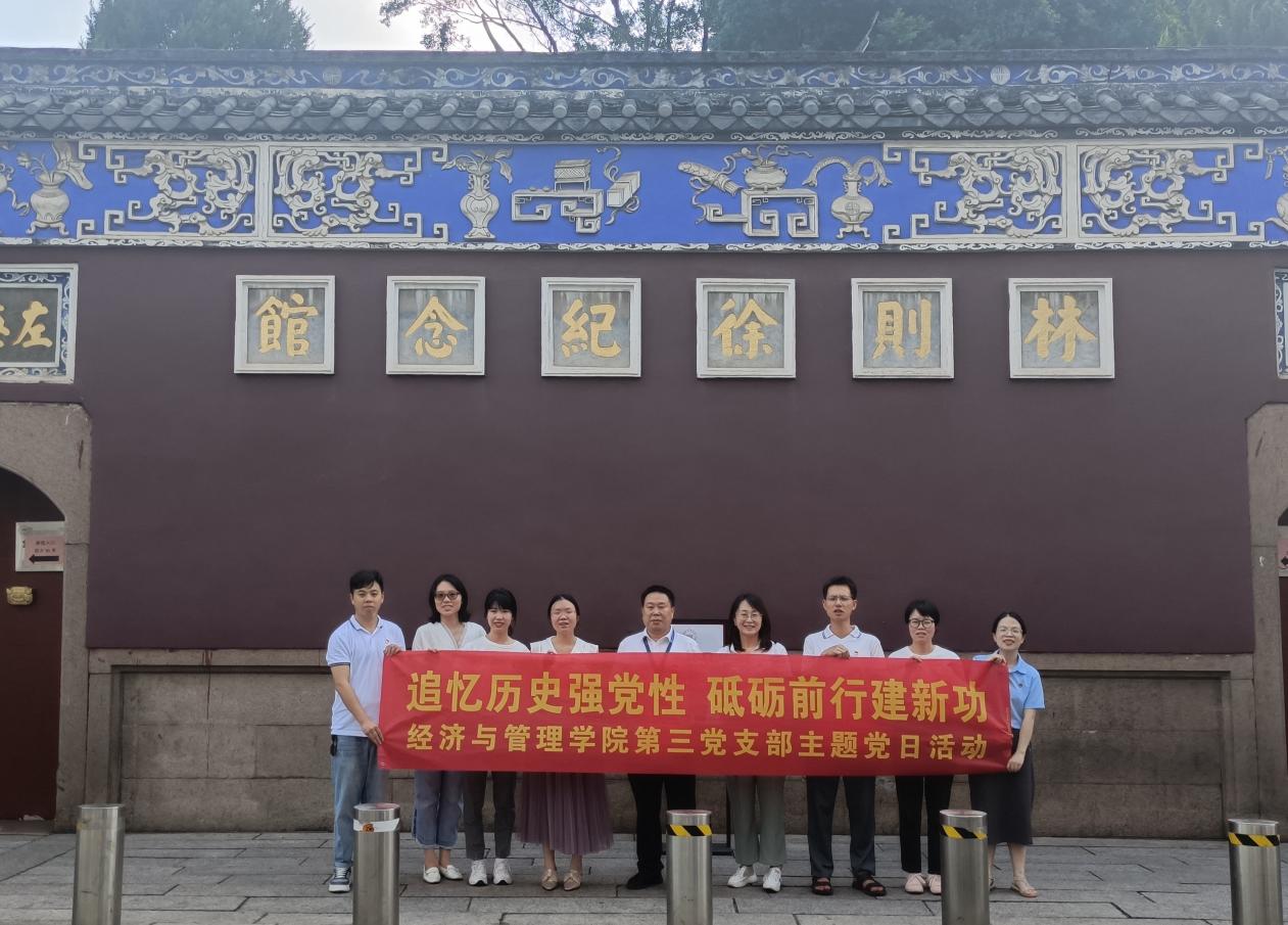為深入開(kāi)展學(xué)習(xí)貫徹習(xí)近平新時(shí)代中國(guó)特色社會(huì)主義思想主題教育,不斷增強(qiáng)黨員教師的責(zé)任感,增強(qiáng)支部凝聚力和黨員的黨性意識(shí),切實(shí)發(fā)揮基層黨組織戰(zhàn)斗堡壘和黨員先鋒模范作用,2023年6月28日下午,經(jīng)濟(jì)與管理學(xué)院第三黨支部前往三坊七巷開(kāi)展“追憶歷史強(qiáng)黨性,砥礪前行建新功”主題黨日活動(dòng)。