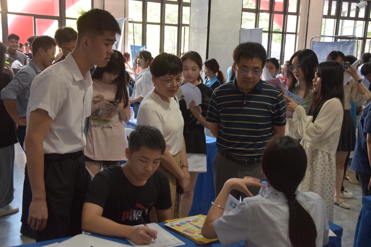 經(jīng)濟(jì)與管理數(shù)百名2024年應(yīng)屆畢業(yè)生前來咨詢和面試。我院領(lǐng)導(dǎo)也十分重視本次招聘會(huì),黨總支書記俞素平、院長(zhǎng)房曰榮、副書記林麗萍、副院長(zhǎng)林穎和學(xué)院老師一起蒞臨現(xiàn)場(chǎng)指導(dǎo),詢問畢業(yè)生的求職就業(yè)情況,并針對(duì)性地提出建議和幫助,助力畢業(yè)生走穩(wěn)就業(yè)路。