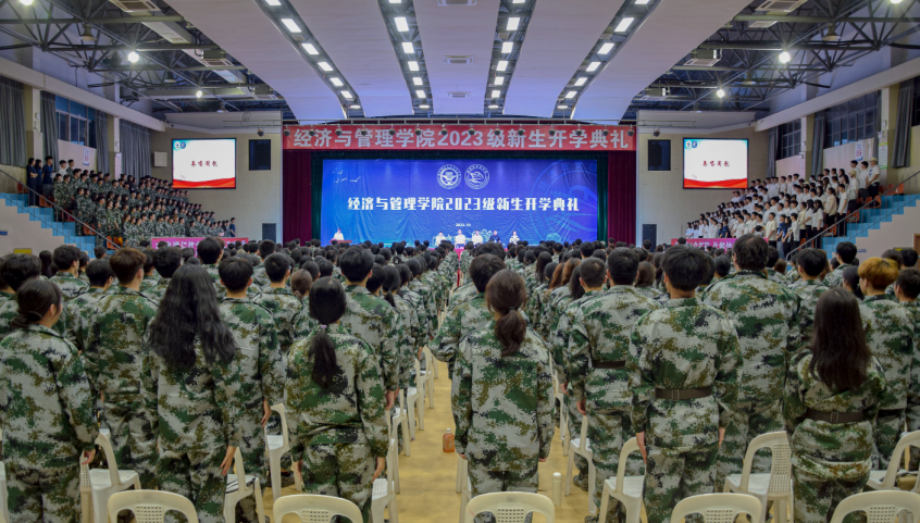 青春揚(yáng)帆正啟航,奮楫篤行新征程。2023年10月12日,經(jīng)濟(jì)與管理學(xué)院2023級(jí)新生開(kāi)學(xué)典禮在文體中心隆重舉行。經(jīng)濟(jì)與管理學(xué)院黨總支書(shū)記俞素平、院長(zhǎng)房曰榮、黨總支副書(shū)記林麗萍、副院長(zhǎng)吳吉明、林穎等領(lǐng)導(dǎo)出席典禮,各教研室主任、各專(zhuān)業(yè)教師代表、2023 級(jí)新生輔導(dǎo)員、2023級(jí)班主任和2023級(jí)全體新生到場(chǎng)參加。典禮由團(tuán)委書(shū)記傅一丹主持。