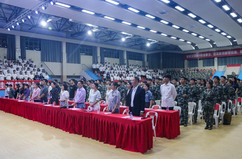 國(guó)歌響起、全場(chǎng)肅穆,2023級(jí)新生開(kāi)學(xué)典禮在莊嚴(yán)嘹亮的國(guó)歌中拉開(kāi)序幕。